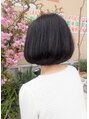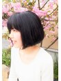 全体に量が多く太い毛なので内側を軽く毛先を少し馴染む様に重めの前下がりボブでバランスよくしました。