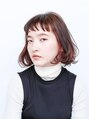 シンプルなボブに少しだけ入れたレイヤーでスタイリングしやすく。内側に入れた赤色のデザインカラーはブリーチ無しなので、髪のダメージなく入れることができます♪