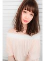 似合わせのしやすさが人気の鎖骨ミディなロブです。肌馴染みのいい8トーンのヌーディベージュに柔らかい質感のニュアンスカールで外人のような雰囲気に。前髪を眉の長さのシースルーバングで少し個性を出してます!いろんなファッションにもハマるスタイル。