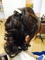 全体をかわいく巻きます。トップの高さを出してサイドをまとめます。飾りをつけて出来上がりです!