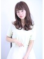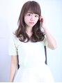 胸上の長さに表面のみレイヤーを入れて、ピンクベージュでカラーします。眉毛ラインで流れる前髪で可愛さUP!