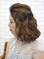 表面にウェーブをつけ下はミックス巻きで緩くほぐすことでナチュラル感を出しています。サイドにツイストを入れることで可愛らしさUPです!