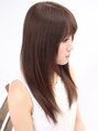 前上がりのレイヤーロングスタイル。全体のシルエットには重さを残しつつ、顔周りにはレイヤーを入れて、スッキリ感と動きと柔らかさをプラス。カラーはベージュをチョイスしてツヤ感と透明感を演出!やわらかいイメージに仕上げたストレートロング。