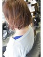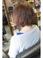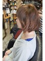 前下がりボブをベースに動きが出せるようにニュアンスをデザインで入れています。カラーは前回のランダムグラデーションブリーチを利用してモーヴカラーをON