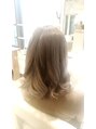 伸ばし途中のミディアムボブスタイル。グレージュとシンプルなグラデーションで毛先に軽さと動きをON♪シンプルだけど一味違うスタイルです。