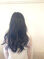 重たくなりがちな黒髪ロングにゆるくパーマを、かけて春らしいフェミニンに。