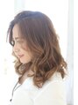 重めのスタイルに表面デザインレイヤーをいれたラフウェーブミディスタイル。カラーはアッシュベージュにハイライト、ローライトを入れて外国人風に。前髪は長めのうざバングをかきあげて大人っぽく。
