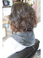 人気の強めパーマ。Airwaveなら自宅での再現性も高く、ダメージも少ないです。カラーはムラになるように熊手カラーをしています。