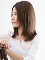 シンプルなストレートボブディ。ボブディとは、ボブとミディアムの中間の長さ。センターパートでクールさを作るけど髪色で少し甘めをプラス。少し毛先を軽くして束感を出すから全体的にも動きを感じるように。伸ばしている途中の方にもオススメスタイルです。