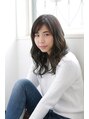 外国人風くせ毛っぽくしたナチュラルスタイル☆ダークトーンのアッシュブラックで、可愛らしさをのこす大人セミロングです♪