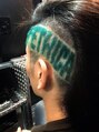 バリカンアートで文字をつくり♪ブリーチ後緑をのせました♪お好きなスペルなどありましたら、相談してください♪