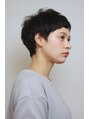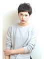 甘さを残したジェンダーレスなショートスタイル。トップのみにナチュラルなパーマをかけフワっとさせ、前髪は少しパツっと感を出す事によって女の子らしい可愛さを。カラーは暗めでも透明感のあるグレージュ。