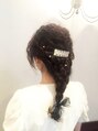 フィッシュボーンに三つ編みと3つ編みを4箇所。流れに合わせて編んだ髪の毛同士をさらに三つ編みにしてリボンとバレッタでアレンジ