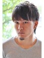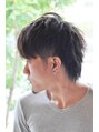 ざくっとした質感でサイドパート風に仕上げたツーブロックネオウルフです。アップバングにアレンジすることでビジネスにもOK!!ウェットなスタイリングでジェントルマンにも♪カラーは春らしくアッシュブラウンに。
