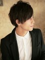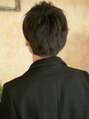 サイドは刈り上げすぎないツーブロックの短さで攻めすぎないアシンメトリーショートに仕上げました。黒髪でもビジネスシーンにもオフにも幅広く対応できる人気のスタイルです。カラーはダークブラウンからブラックがオススメです。