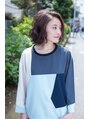 春夏のおすすめボブスタイル。あからさまなレイヤーは入れずにベースはやや重ために、表面顔まわりに抜け感が出るようにレイヤーでカット。スタイリングでウェット感をプラスしました。