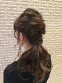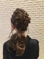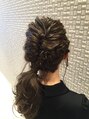 全体を細かくウェーブをつくり、ゆるふわにねじりをいれポニーテール風にまとめました☆