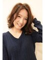 カットは、ミディアムロブベースにして全体にミックス巻きでデジタルパーマをかけてます。カラーは、ジンジャーアッシュにし透明感と女性らしさを☆