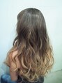 全体をブリーチ後、さらに毛先にハイライトを入れて明るくしてからアッシュ系の色をのせています!時間はかかりますがきれいな色が出せます(^^♪