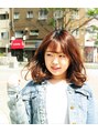 おとなカワイイミディアムボブです。外側にはねていくようにアウトフェザーカットしてあります!内側にハイライトがフルリバースしたスタイリングにマッチしてますね^^