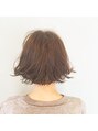 ナチィラルなクセをイカした外ハネボブ♪クセがある方は外にはねやすいようにカットして、直毛の方はパーまで逆巻きを!カラーは暗めなライムアッシュで赤味を消して☆