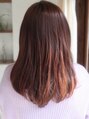 全体的に重ためなAラインシルエットに♪ シースルーバングを合わせて軽さも演出! 前髪に隙間があることで抜け感が出てお洒落に♪ レッド・ピンク系のカラーで甘さもプラスしました☆