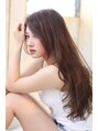 ややサイド流しで分けたアゴ下長めバングと大人の女性をラフウェーブで演出!!赤味を抑えた明るめのグレージュで透明感と色っぽさを出す。揺れる髪もカールがつくことで可愛く見せれます。