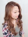 無造作な大き目のカールで、軽さやソフトな質感がマネしたくなる可愛さに♪大人カジュアルは”やりすぎない”ように見せるのがポイント!前髪は毛流れのあるアップバングで、”リラクシー”な女っぽさが好きな方にオススメのスタイルです♪