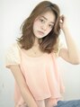 【K-two心斎橋・小顔カット】かき上げた前髪の毛先が頬骨にくるようにすることで、長め前髪で顔を出していても小顔効果◎リップライン下にも厚みをもたせると、骨格をカバーし、小顔に見せてくれます。カラーはシアーベージュ。