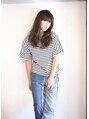 毛先にゆるっとカールのニュアンスストレート。透明感カラーはオリーブアッシュ。外国人のような質感を演出。ストレートでも柔らかな動きをだして。