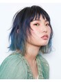 アンブレラカラー 黒髪 ボブ オン眉 ターコイズ