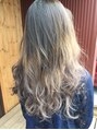 今、人気のハイライト×グラデーションカラーに仕上げました。自毛の色が明るいのでそのまま生かし、中間から毛先をブリーチし更にベージュヌード色でナチュラルに仕上げました。