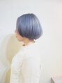 ハイトーンベースの髪にブルーアッシュ系のカラーをon