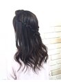 編み込み+リボン♪ 黒髪 トーンダウンカラーでも かわいく仕上がります!! プルエクステ エクステ 復元ドライヤー オーガニックノート ミルボン ルーブフドウ クリームズクリーム 2415