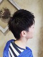 骨格に合わせたカットでシルエットを整えます。サイドのツーブロックからナチュラルに繋げたベリーショートスタイル。直毛すぎる方はシークレットパーマを当てても◎