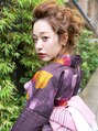 緩めのアップスタイルです。おくれ毛を無造作に出すことでルーズに仕上げ、今季オーダーも多いこのスタイルは浴衣にピッタリなスタイルです。
