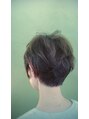 くせを活かしたショートヘア。トップと目の横にボリュームを出しひし形に!!えりあしを短くする事で丸みを出し女性らしく^^