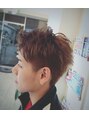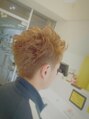 Wカラーで2ブロ いったん、ブリーチで色を抜いてオレンジ系のカラーを入れました。2ブロックで内側は涼しく、夏の暑さにそなえます☆