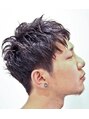 バックのウエイトを高さを高くしているのでつぶれやすい後頭部も出て見えます。あえて、スクエアフォルムにして人とは違う感じを演出しています。
