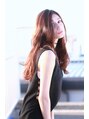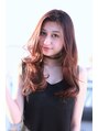 ラフな質感のカールにハイライト&ローライトのデザインカラーをMIX