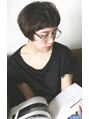 color : シングルカラー「ラベンダーアッシュ」でクスミカラーを再現*どんな人でもトライしやすいナチュラルな外国人風カラーです*cut :ショートマッシュ+ショートバング *最後に「丸メガネ」をかければ出来上がり*
