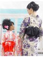 小学生のお子様とお母様で仲良く浴衣です☆二着ともレンタル商品です。お子様の小さいころはあっという間に過ぎてしまうものなので、いい夏の想い出になりそうですね♪