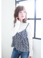 緩やかなカールが大人可愛いを演出してくれるミディアムスタイルです(^^♪ マユ上バングと全体のアンニュイカールで今っぽさをプラス☆