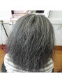 白髪染めをやめて4年以上、全体的にチリチリくせ毛です。全体にダメージ処理剤をタップリつけ、水分を補給して施術しました。イメージが変わって気分爽快!