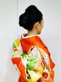 お呼ばれにぴったりなセットです。三つ編みでまとめてしっかりキープ。上品なまとめ髪でトップにボリュームがあり、着物とよく合います!