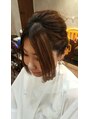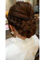 上品になるようにトップは少しふんわりさせて、サイドは編み込みでおさえ後ろでまとめています。