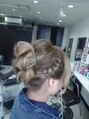 地元のお祭り用ヘアセットです。両サイドに編込みを入れて全体をゆるっとまとめてフワフワお団子にしました顔周りはゆるい外巻きにして完成です。