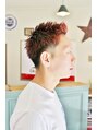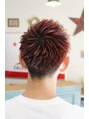 スタイルのポイントは根元をあえて染めず黒髪と赤で男らしさをアピールしながらもオシャレなスタイルです。