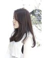 ローレイヤーをベースに大きめカールをいれて、流れる前髪が大人キレイなスタイル♪