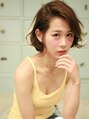 大人可愛い定番の前下がりボブといえばコレ!ストレートすぎず、自然な内巻き加減がベスト♪全体的に透け感、束感が出るので重く見えず、軽く流れるベビーバングがキュート☆耳かけで大人度がグンとアップするフェミニンボブはローライトでより動きが出ます。